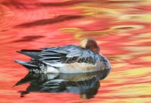 初冬の池とカモと色付く水面《鳥撮り三昧》9