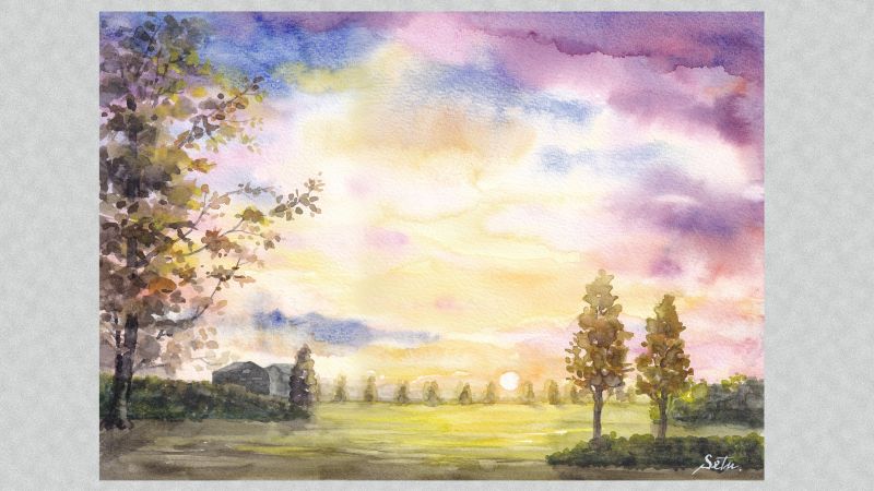 母の年齢を超えた今、空を見上げる時間、心の余裕ができました。つくば周辺は、本当に素晴らしい空が見られますね。特に夕日は、短い間にいろいろな表情を見せてくれます。今回は、つくば市西大沼で描いた絵です。牛久学園線が遠方に見え、まるで天国のどこかのようです(行ったことないけど)。私のイメージも絵に乗せてこんな風に。(イラストレーター)