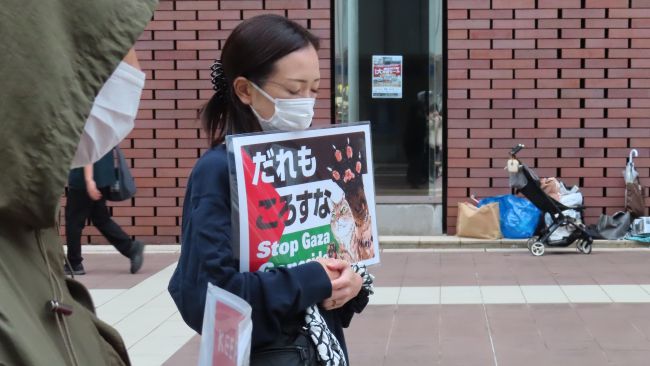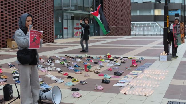 ラクマンさんと共に追悼と抗議行動を呼び掛けた市内に住む大学生、斉藤花さん(25)は参加者を前にマイクをとり「ガザで第一段階の停戦に入ったが、これで完全に殺害や侵略が終わったわけではない。イスラエル軍におびえ、家族と切り離されながら、パレスチナ人の暮らしはとても厳しいものになっている。パレスチナの一人一人の子どもたちに思いをはせてほしい」などと話し、参加者に黙とうを呼び掛けた。