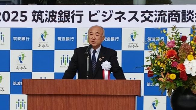 地域企業の情報発信と販路拡大を応援する筑波銀行(本店土浦市、生田雅彦頭取)の「2025ビジネス交流商談会」が22日、つくば市竹園、つくばカピオで開催された。県内のほか栃木、群馬県など北関東の約170の企業や団体が参加し、「食」「ものづくり」「ベンチャー」などの各ブースで自社の技術や商品をPRした。約2500人が来場し、各ブースでは担当者の話に熱心に聞き入ったり、名刺を交換する姿が見られた。約400件の商談が行われた。