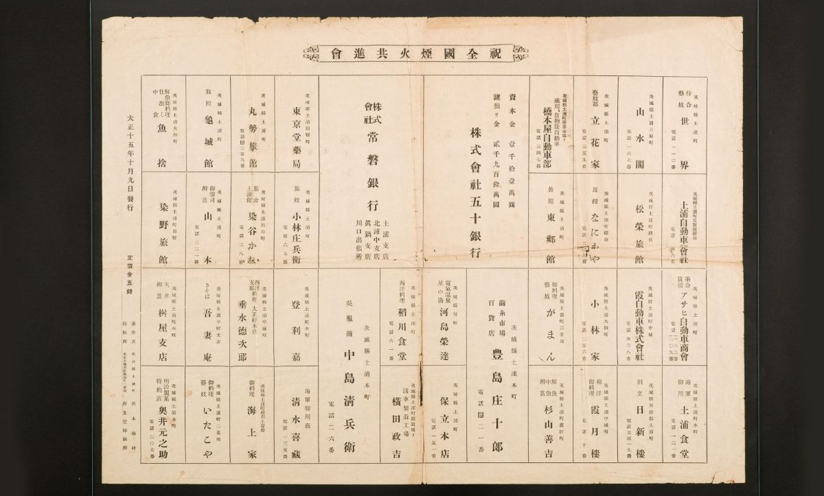 花火見物客はさらに増え、街の商店街はうるおったようだ。現在、土浦市立博物館で開催中のテーマ展「土浦の花火百年」(本サイト記事は10月12日掲載)に展示中の第2回プログラムによれば、大会に共催した店舗は、飲食店や旅館が並んでいることからも、第2回移転説は信憑(しんぴょう)性が高いように思う。