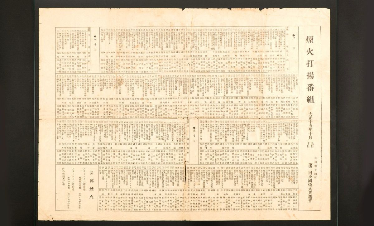 土浦の花火は、100年前の1925年9月5日、霞ケ浦湖畔の岡本埋立地で始まった。10万人を超える観客が土浦の町中にあふれたそうだ。ただ、当時のプログラムが残存せず、競技の内容、出品作品や花火師の名前は確認されていない。プログラムがあったのかどうかもわかっていない。
