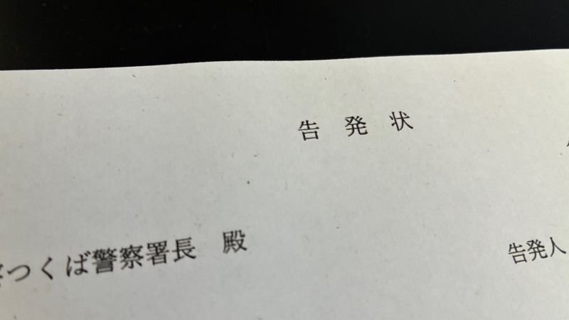 つくば警察署は、告発状を受理したかどうかについて「個別のことはお答えできない。仮に出ていたとしても捜査に関わることはお答えできない」としている。(鈴木宏子)