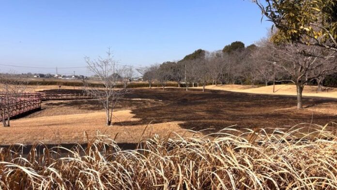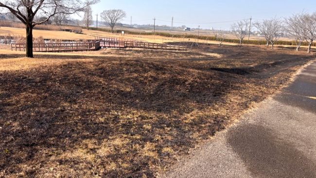 17日午前10時53分ごろ、つくば市が管理する同市上郷、川口公園で芝生が燃える火災が発生し、同公園北側の芝生の一部約2500平方メートルが焼けた。消防車6台が出動し、火は午前11時23分に鎮火した。けが人はいないという。