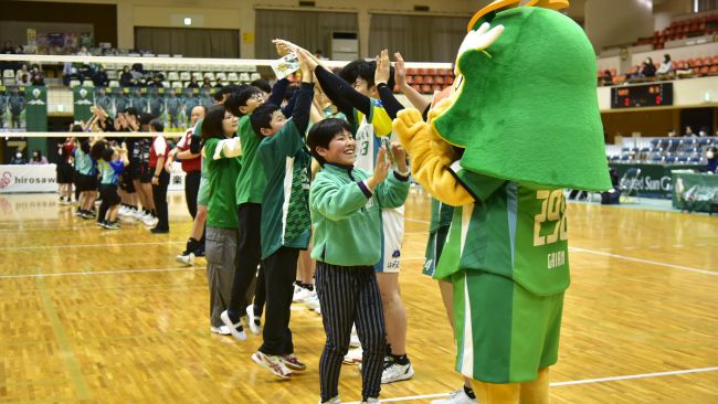 大島さんは昨年11月に初めてサンガイアの試合を観戦、選手たちのサーブの速さやレシーブのうまさに感動し、もっと深く知りたいと思って今回のエスコートキッズに応募した。スポーツは野球やバドミントンを楽しむほか、お母さんに付き添ってママさんバレーの練習にも参加しており、「一つ一つの小技が重要で、うまくなるほど面白い」と、やりがいを感じているという。(池田充雄)