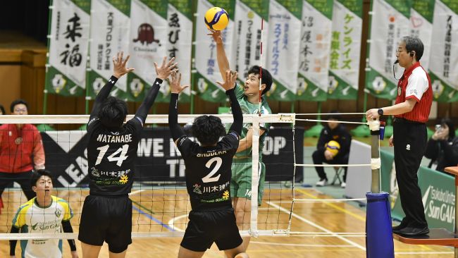「チームの長所がたくさん出た試合だった。後半は相手も良さを発揮したが引き離されず、伯仲した展開から勝てたことは大きかった」と加藤俊介監督。第3セットで逆転を許したのは、相手がサンガイアの攻撃に慣れてきたことに加え、ローテーションの変更も要因の一つ。前列と後列を入れ替え、相手はサンガイアの守備陣に対し高さのギャップをつくり出してきた。そこでサンガイアはセッターに高さのある森居史和を入れ、攻撃陣にはバックアタックの得意な村松匠を加えるなど、チームの総合力で最終的に埼玉をねじ伏せることができた。