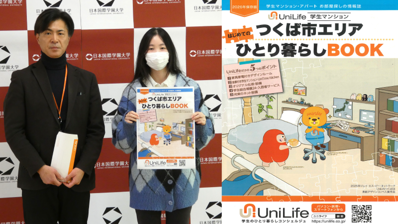 作品は昨年11月につくば市エリアで発行された学生向けマンション・アパート情報誌「学生下宿年鑑2026ダイジェスト版—つくば市エリア ひとり暮らしガイドブック」(同グループUniLifeつくば店発行)の表紙になり、年間で約5000部が発行される。