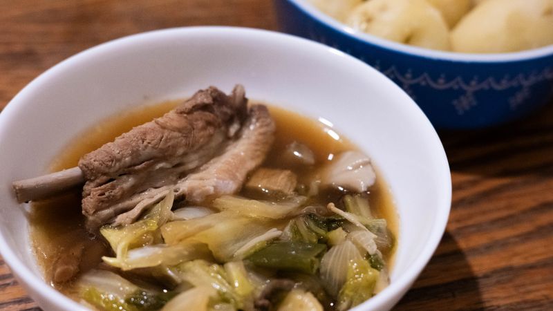 煮えていく鍋から湯気が立ち、少し土っぽい匂いが台所に広がった。ラム肉の香りは思っていたより控えめで、山菜の匂いに溶けていく。これが正解なのかどうかは分からないし、物語と同じ味である必要もない。ただ、文字で読んだことのある一場面が、現実の鍋として再現されていく。