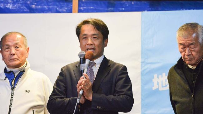 午後9時55分、国光氏は自民党県議や市議らとバンザイ三唱。、「今回、4回目の選挙になるが、私の力不足で本当に厳しい選挙だった。それを皆さん、私にずっと伴走いただいたり、寒い中、叱咤激励いただいて、駆け付けていただいたり、一緒に歩いていただいたり、皆さんのお陰でこの場にこうやっていられなと、本当に皆さんに感謝しかありません」とあいさつした。