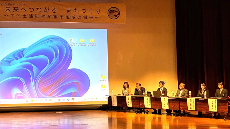 つくばエクスプレス(TX)の土浦駅延伸実現に向けたシンポジウムが18日土浦駅前の県県南学習センターで開かれた。土浦日大高校の生徒たちが提案したもので、安藤真理子土浦市長、伊藤豪人県交通政策課長、塚本一也県会議員らがパネリストとして参加、つくば駅止まりのTXを土浦駅まで延伸することで生まれる利点について議論した。席数450の会場は約500人の聴衆であふれた。