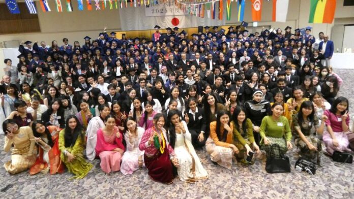 卒業式は、隣接する日本料理店、つくば山水亭のレセプションホールを会場に催された。卒業生らは母国の民族衣装を着て、青いガウンをまとい、学士帽子をかぶって入場、笑顔で式典に臨んだ。卒業後は大学や専門学校に進学したり、国内企業に就職したりなどそれぞれの専門分野に進むという。