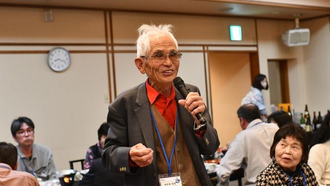 懇親会で挨拶するサミット発起人の田古良元昭さん